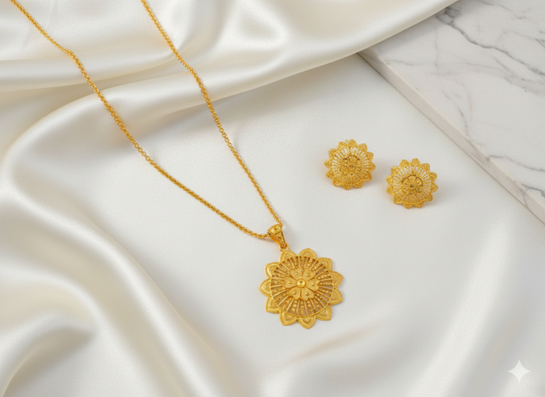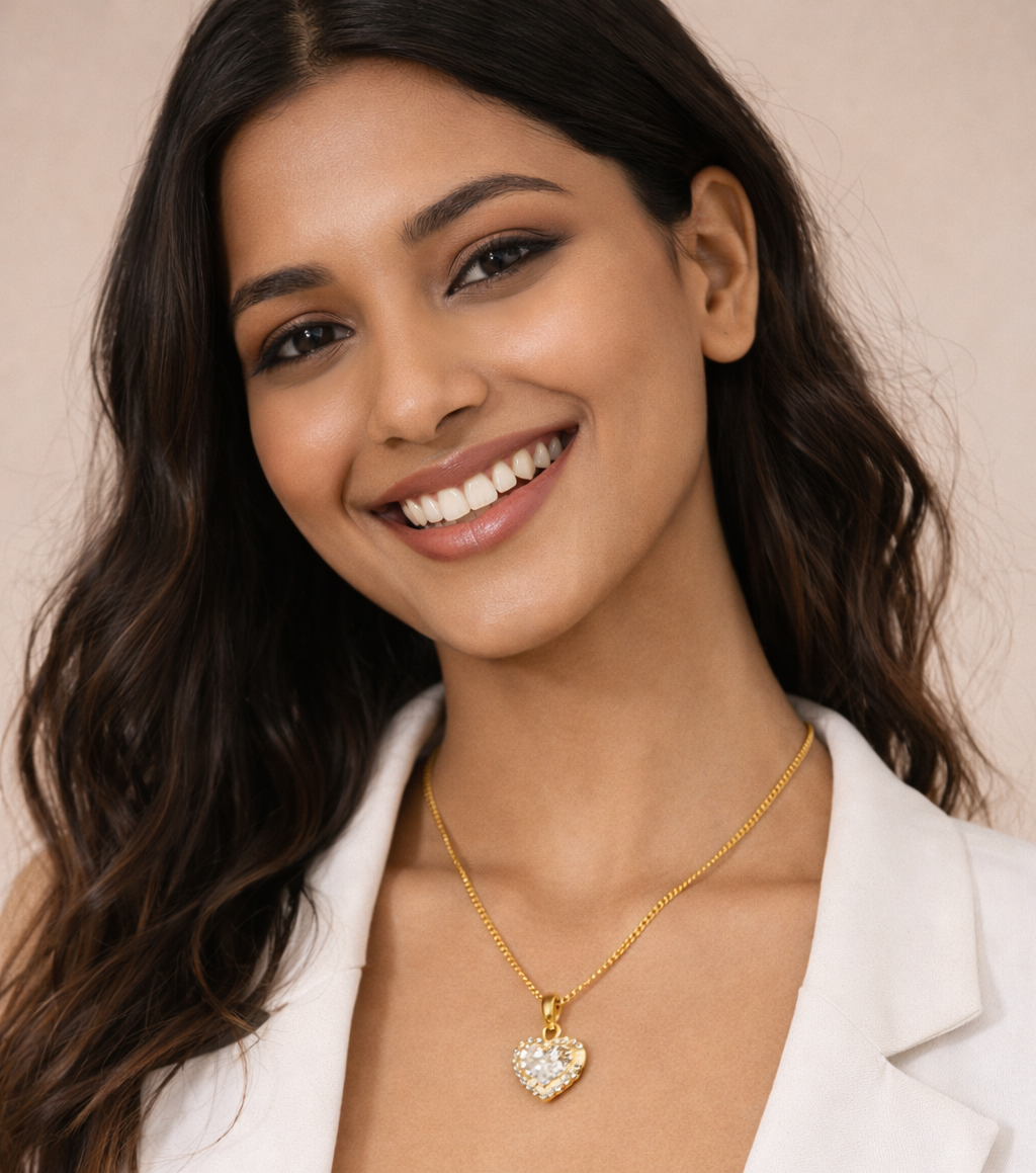 We combine a pendant and an earring set for regular use. Skin-friendly, All-day use. 6-month 100% replacement. Bhabyam assured a guarantee.