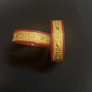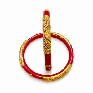 Red Pola Bangle Pair with Golden Filigree Design