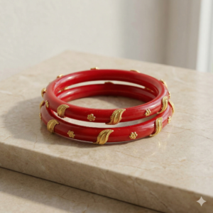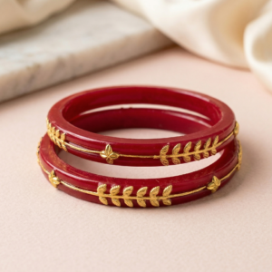 Traditional Red Pola Bangle Pair with Golden Leaf Border