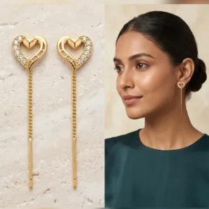 Heart Threader Gold-Tone Earrings | American Diamond Stud Heart | Sui Dhaga Earrings