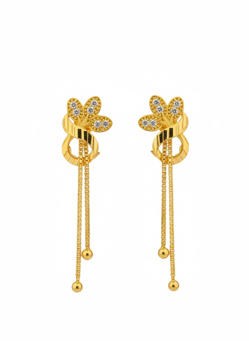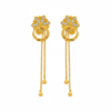 modern gold earrings for women, floral chain drop earrings, cz stone earrings, contemporary earrings design, long drop earrings for women, party wear earrings, festive jewellery for women, stylish artificial earrings, gold tone statement earrings, designer earrings india, trendy earrings for girls, imitation jewellery online