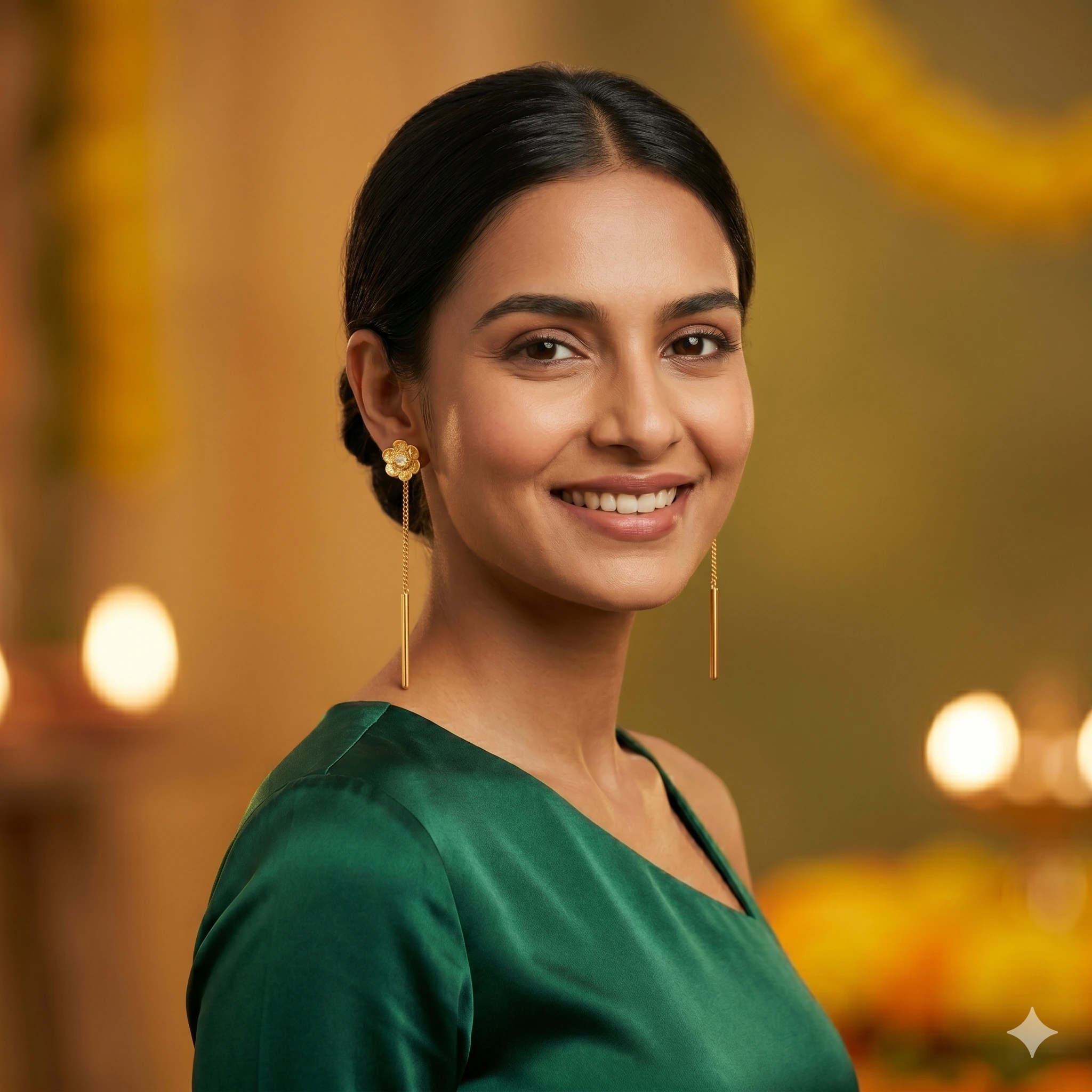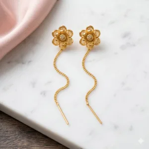 Upgrade your jewellery collection with these Elegant Floral Sui Dhaga Long Chain Drop Earrings, specially crafted for women who love minimal luxury with a traditional touch.