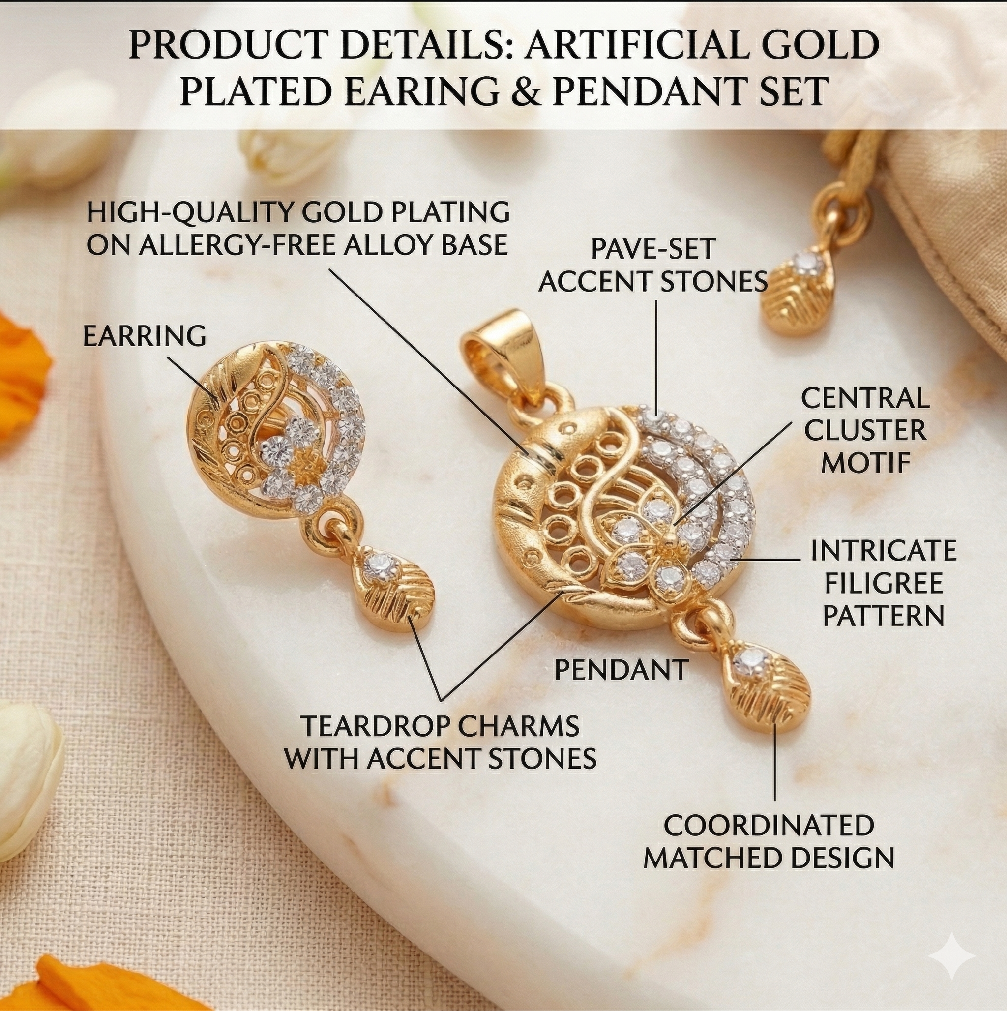 • Elegant matching pendant and earrings set