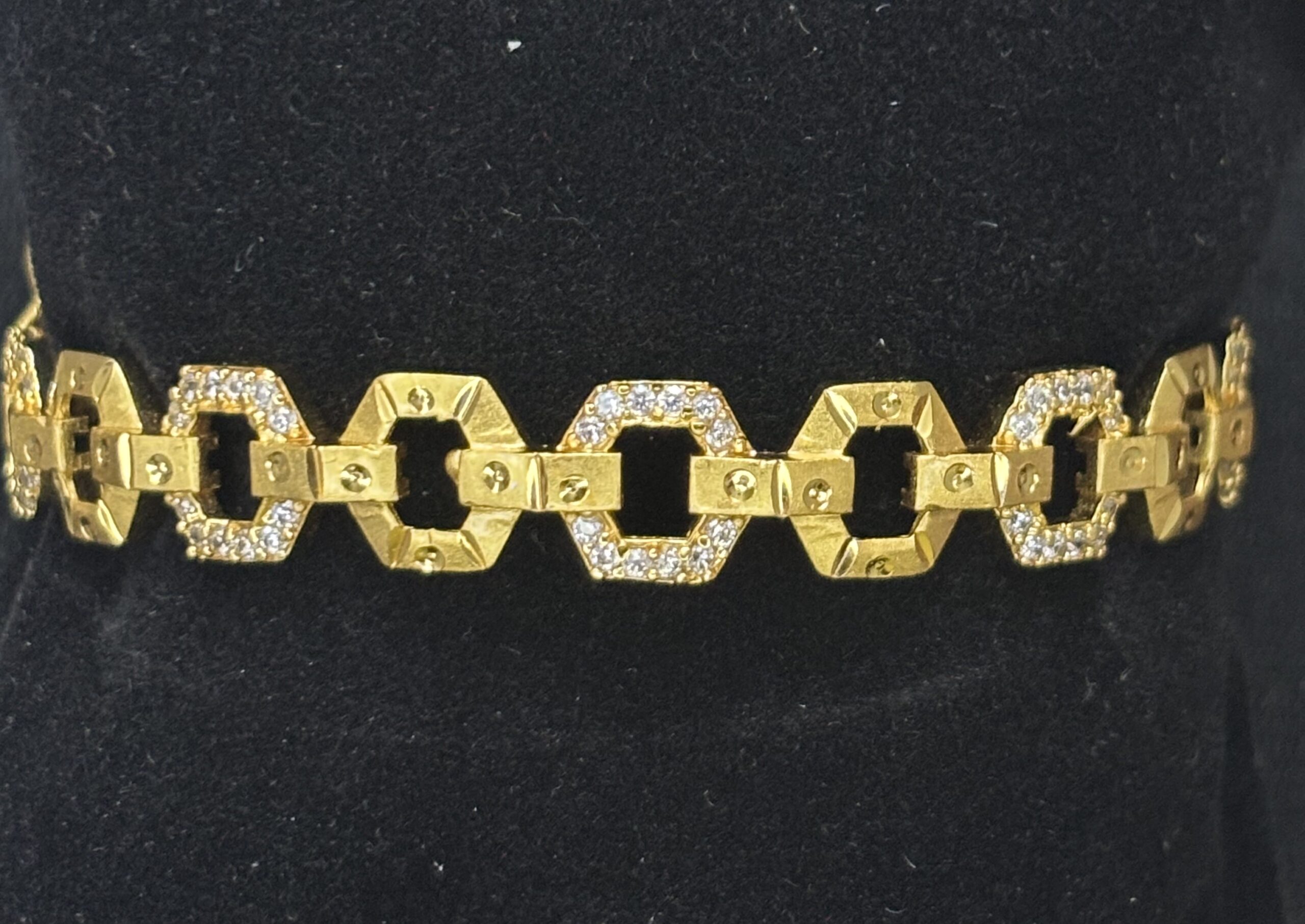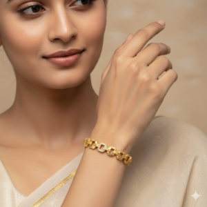 Crafted with a high-quality 18K gold-plated finish, this bracelet offers a rich gold-like shine while remaining lightweight and comfortable for long hours of wear. The structured yet elegant design makes it a versatile accessory—ideal for office wear, festive celebrations, parties, and special occasions.