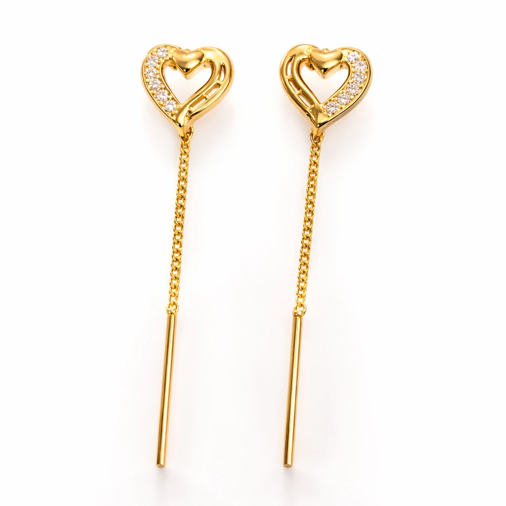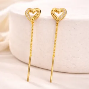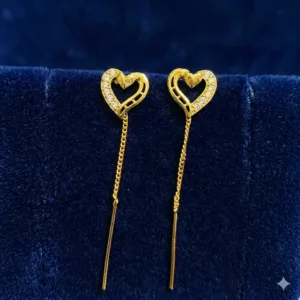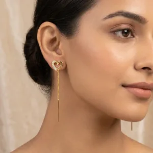 Celebrate modern elegance with these beautifully designed heart-shaped gold-tone threader earrings from Bhabyam. Crafted for women who love sleek, stylish, and feminine jewellery, these earrings feature an open heart motif adorned with delicate crystal accents for a sparkling premium finish.