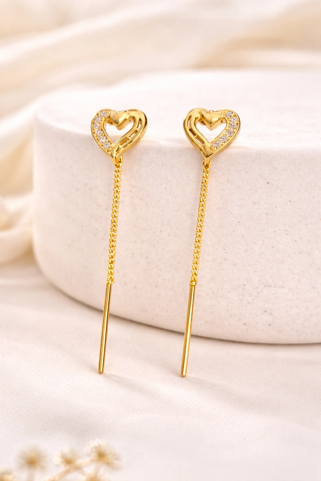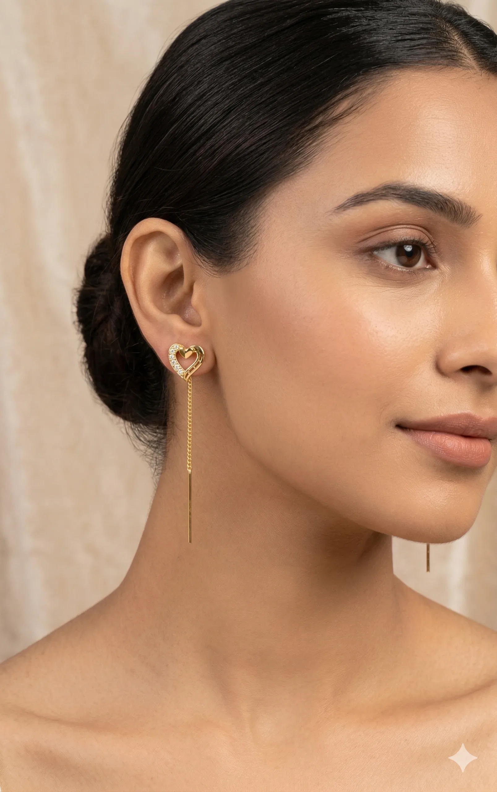 Add a touch of romance to your style with these elegant heart-shaped threader earrings featuring crystal detailing and sleek chain drops. Perfect for daily wear, date nights, gifting, and party styling.