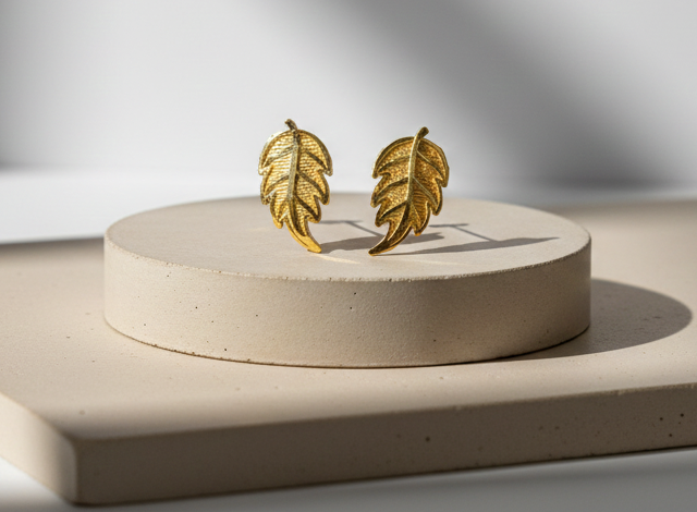 These leaf-shaped earrings are thoughtfully designed for women who prefer understated elegance with a touch of natural beauty. The finely sculpted leaf pattern, combined with a soft textured finish and smooth gold accents, creates a graceful and balanced appearance.