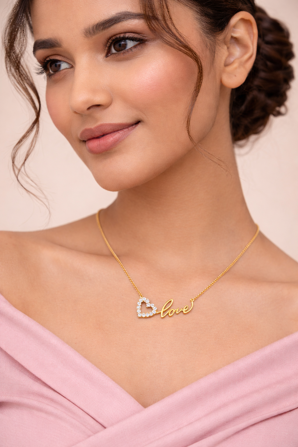 gold-plated love necklace, heart charm necklace for women, crystal heart pendant, love pendant necklace, romantic gift jewellery, daily wear gold plated necklace, Valentine’s gift necklace for girls, stylish pendant jewellery
