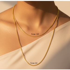 Crafted with premium 18K gold plating, this necklace provides a rich golden tone while remaining lightweight and comfortable for regular use. The carefully polished links ensure a smooth finish against the skin, making it suitable for extended wear throughout the day. A secure clasp adds reliability and ease of use.
