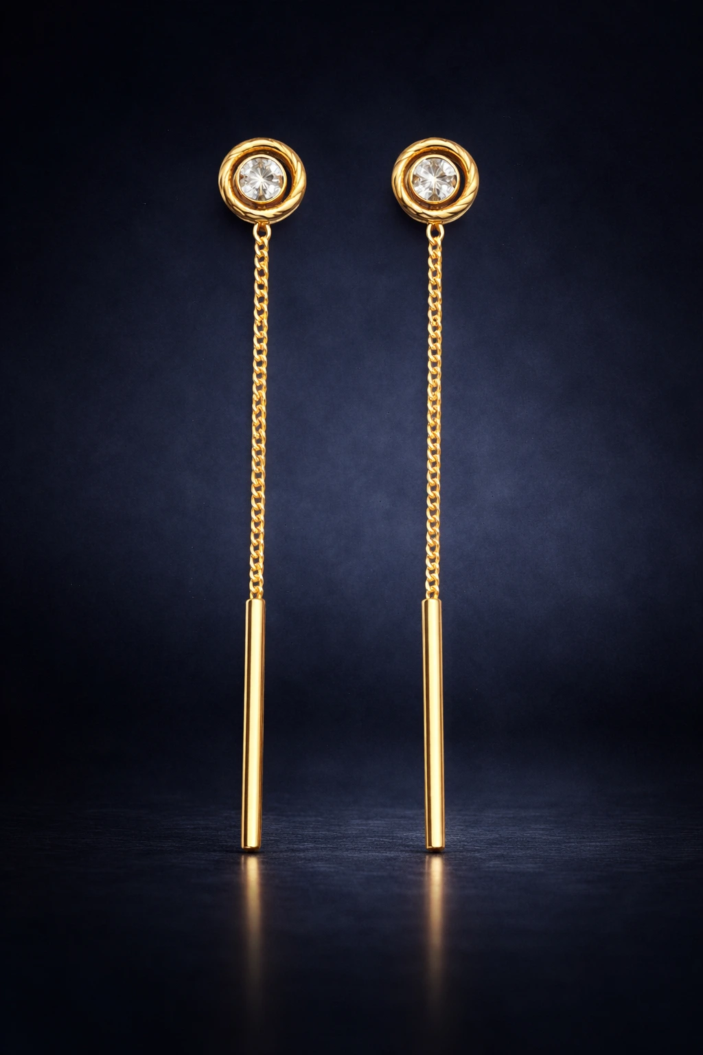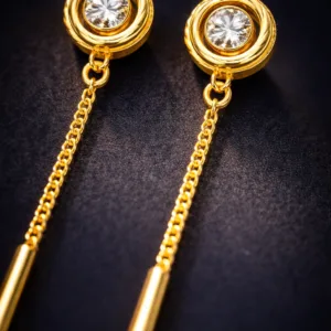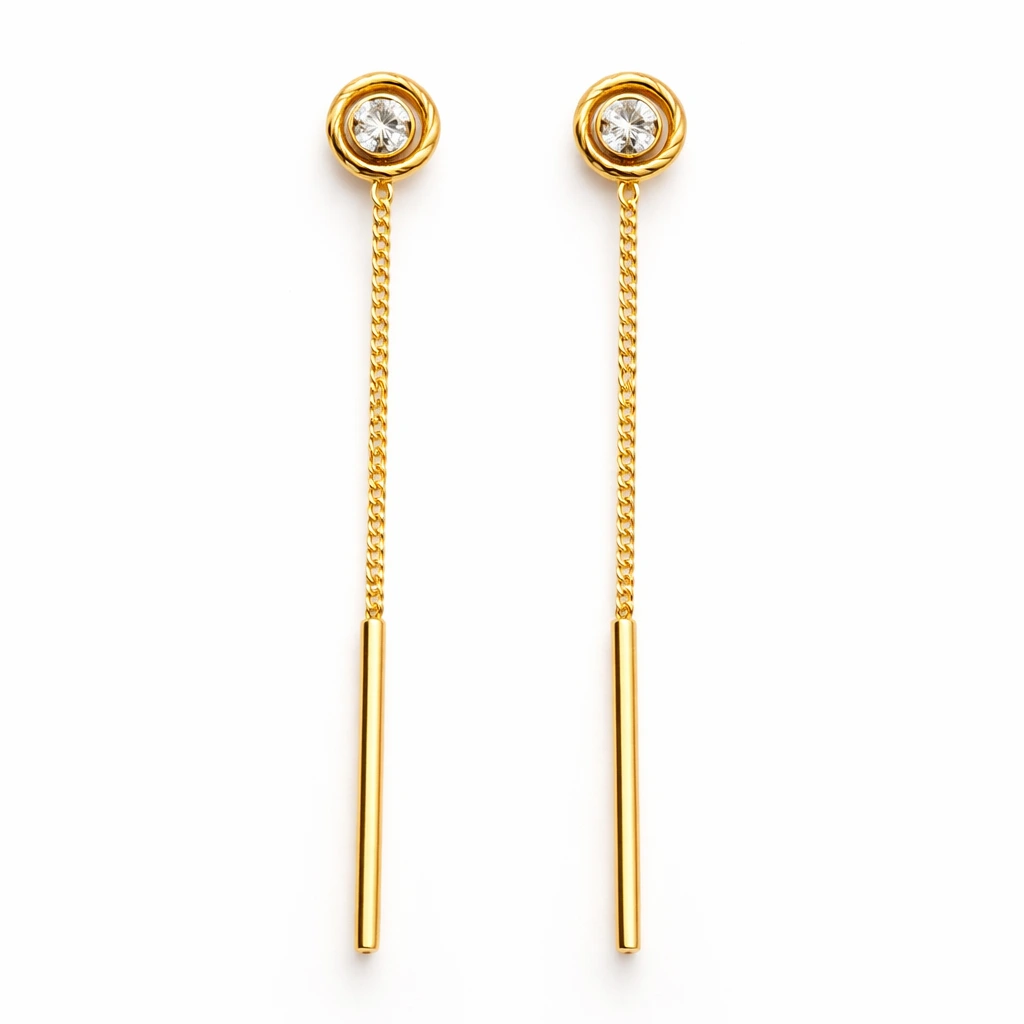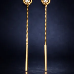 Enhance your style with these elegant stone stud Sui Dhaga earrings featuring a sleek long chain and minimal gold drop bar. Perfect for daily wear, office styling, parties, and modern western looks.